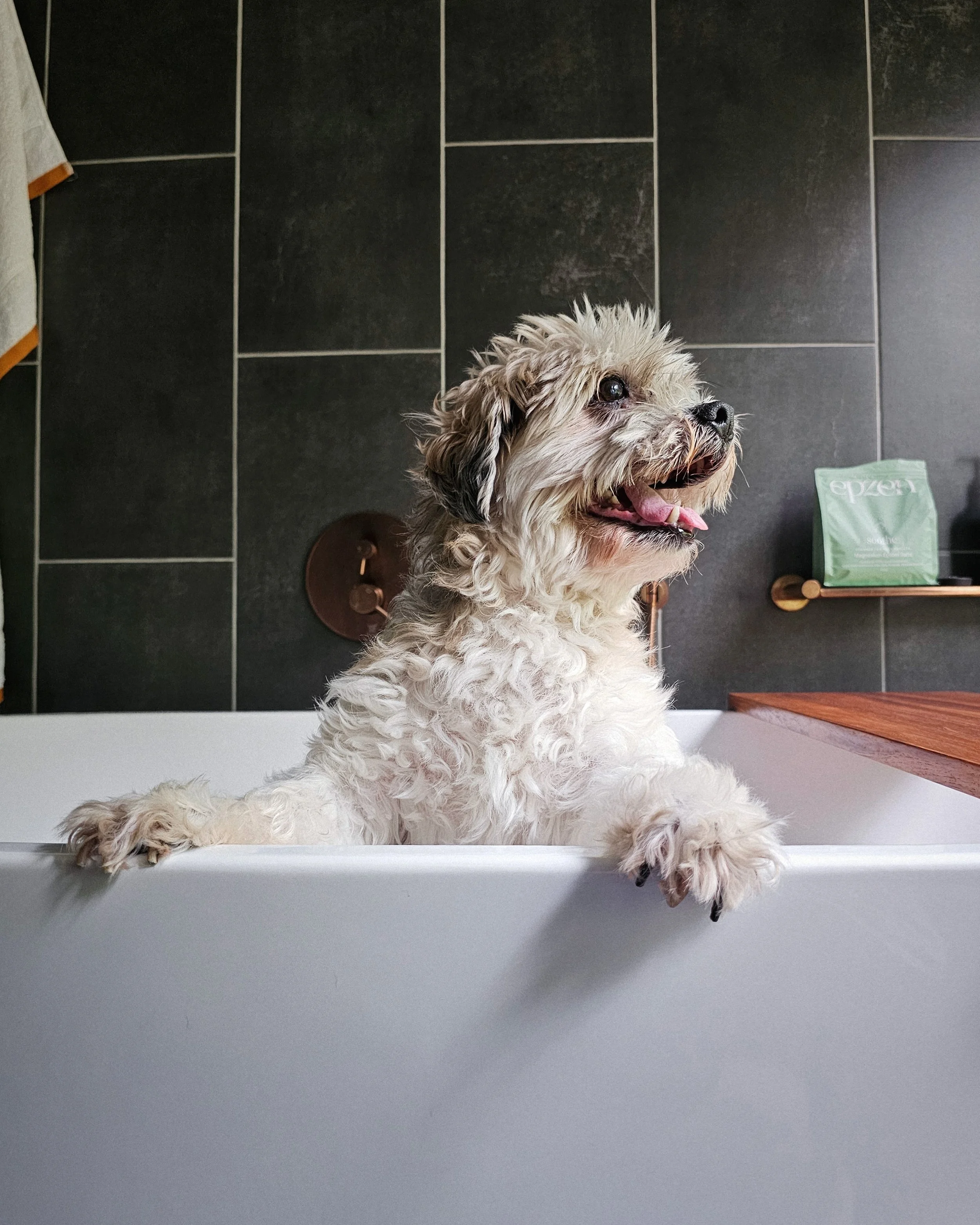 Warm wash and dry, nail trimming and tidy-up on paws, face and bottom.